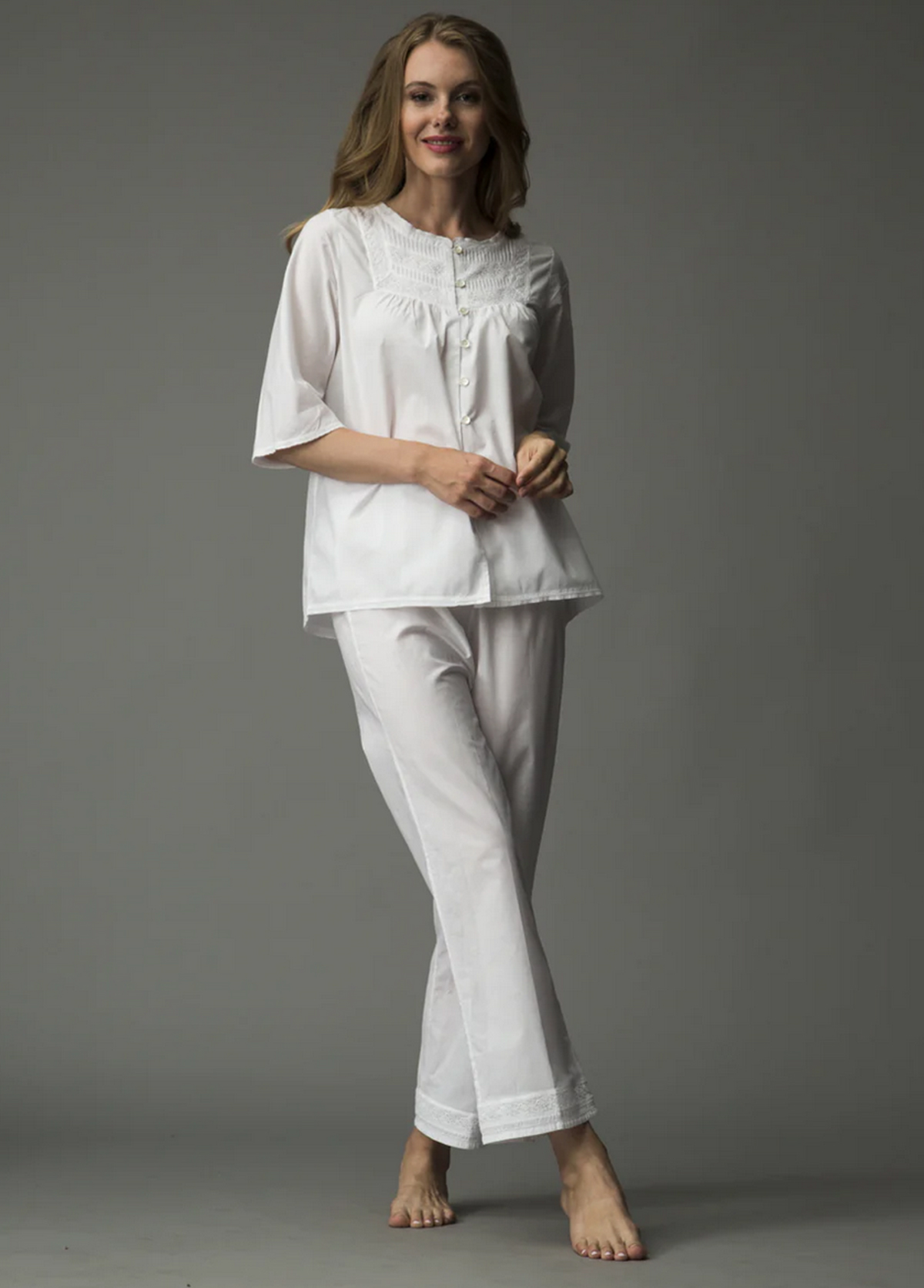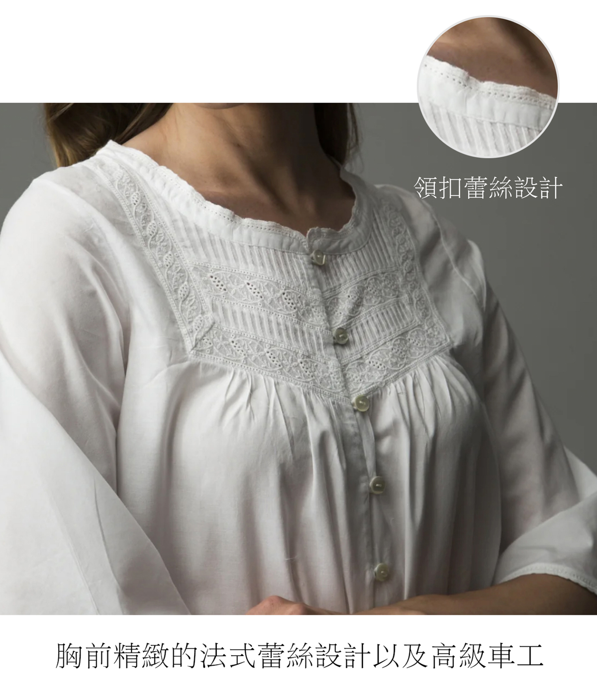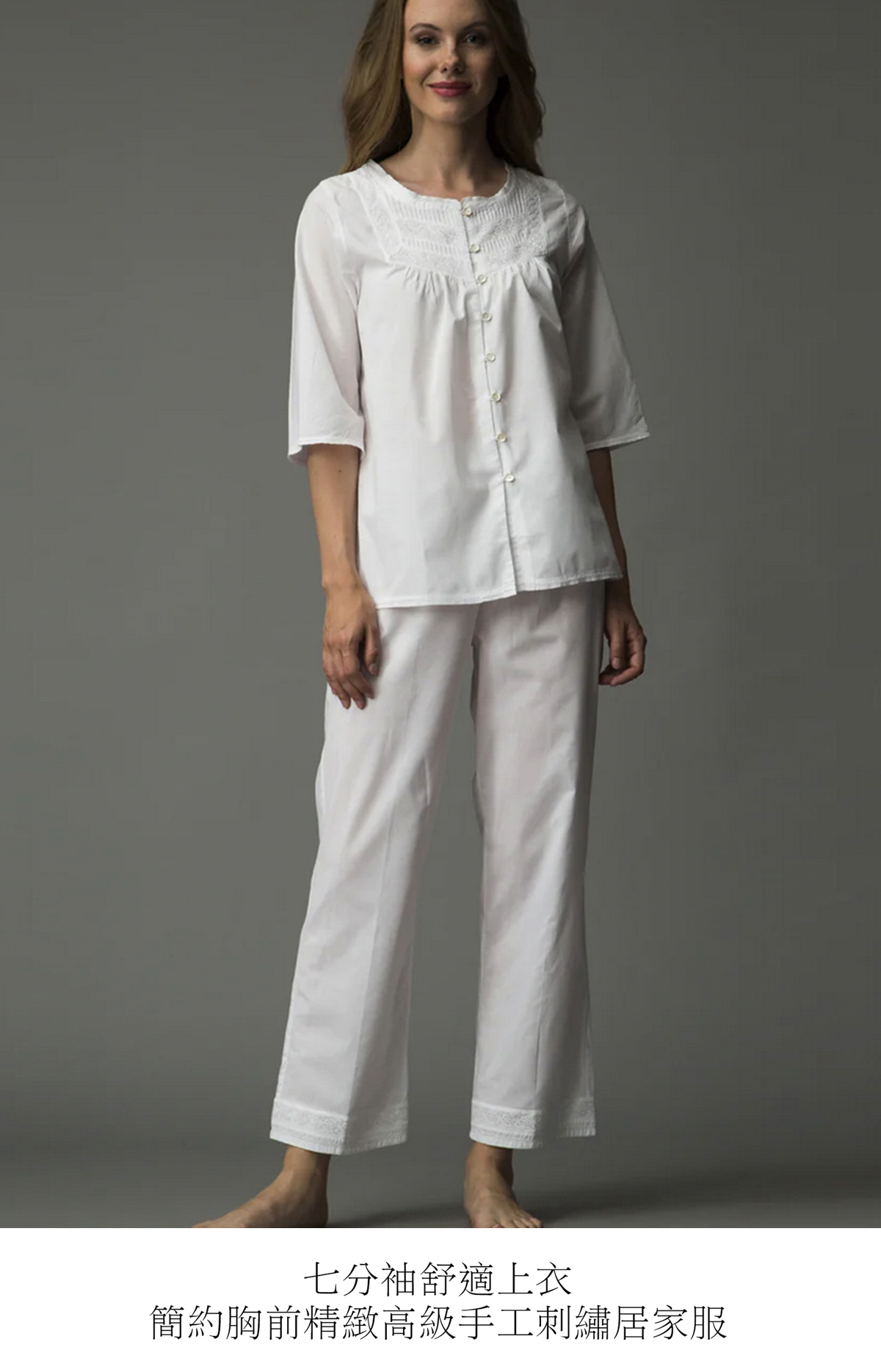 七分袖舒適簡約胸前精緻高級手工刺繡居家服